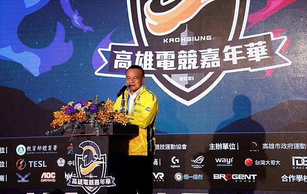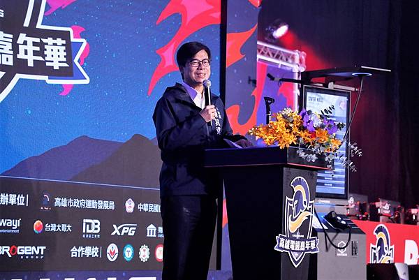 力挺電競產業的市長陳其邁特別出席高雄電競嘉年華開幕式,教育部參事葉丁鵬、高雄市電競委員會主委黃香菽、中華民國自由車協會秘書長李開志、台灣大哥大新媒體服務副總經理李芃君、九太科技籃球隊代表等眾多貴賓均到場共襄盛舉。